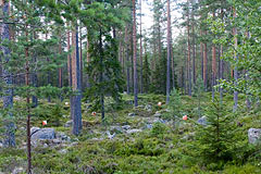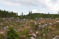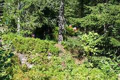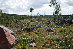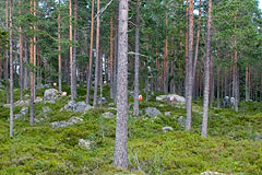 Prije podne smo imali model natjecanje. Teren me je u neku ruku iznenadio jer iako je bio skandinavski nije bio baš tipično skandinavski - radilo se naime o ogromnoj krčevini posutoj kamenim gromadama smještenom uz duž makadamske ceste po kojoj su se natjecatelji kretali. Vremensku kontrolu sam promašio, naime uzeo sam kompas i "usjeverio" kartu tako što sam je okrenuo za 90 stupnjeva u odnosu na položaj ukojem sam je dobio. Onda krenuh prema prvoj kontroli. Gledajući samo teren odgovor je bio jasan zastavica B, međutim čovjek se u preciznoj mora pitati gdje se nalazi i da li vidi to što misli da vidi ili možda kakav paralelni detalj. Tu sam međutim bio u velikim problemima jer taj dio karte nije bio dobro nacrtan i azimuti sa raznih mjesta su davali različite odgovore. Na ostatak staze nisam imao primjedbi osim što sam malo zazujao na jednom paru zastavica koji je bio jako daleko. Naime djelovalo je kao da se dvije zastavice skoro preklapaju, ali koliko god se kretao lijevo desno nije se primjećivala nikakva paralaksa. na kraju sam shvatio da su na jednom stupiću postavljene dvije zastavice jedna iznad druge da se bolje vide iz velike daljine.