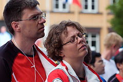 Nakon sprinta uslijedilo je otvaranje prvenstva uz nesto svirke i zgodan igrokaz sa dosta lokalnog folklora. Tu smo se prvi puta našli s našom ekipom koja je došla na Svjetsko prvenstvo u orijentacijskom trčanju, ali ne sa svima, već samo s curama jer je Matjaž morao preskočiti otvaranje da bi se na vrijeme pojavio na sastanku voditelja timova koji je bio u hotelu na periferiji grada, 7 km od centra. Tu smo odmah skužili i da se ne bumo baš puno međusobno družili jer su nam rasporedi bili u koliziji.