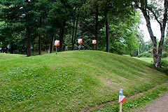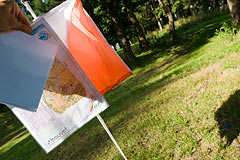 Koliko su precizni članovi Hrvatske reprezentacije u preciznoj orijentaciji vidi se i iz toga što je netko od nas izdaleka (s puta) primjetio - kaj zastavice ne izgledaju malo manje nego što bi trebale biti - ma nemoguće, ali ajmo provjerit. Bile su široke 30 cm kao što treba, ali nisu bile jednake visine, što se lijepo vidi u usporedbi s kartom A4 formata.