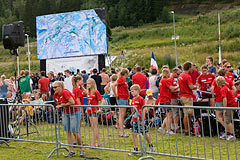 Nakon toga smo išli na glavni gradski trg gdje je bila podignuta velika pozornica i gdje su bili start i cilj finala u sprintu. Zahvaljujuci velikim ekranima, i stvarno dobroj televizijskoj i informatičkoj pokrivenosti cijelog natjecanja prijenos je bio vrlo dinamičan i zanimljiv, vidjelo se gdje tko trči i koliki mu je rezultat u uspredbi s ostalima, po istom sustavu koji se koristi na skijaškom trčanju.