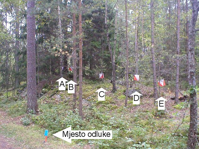 tako da točno znamo koja se zastavica kako zove. Zato nam služi mjesto odluke. To je točka na terenu s koje se vide sve